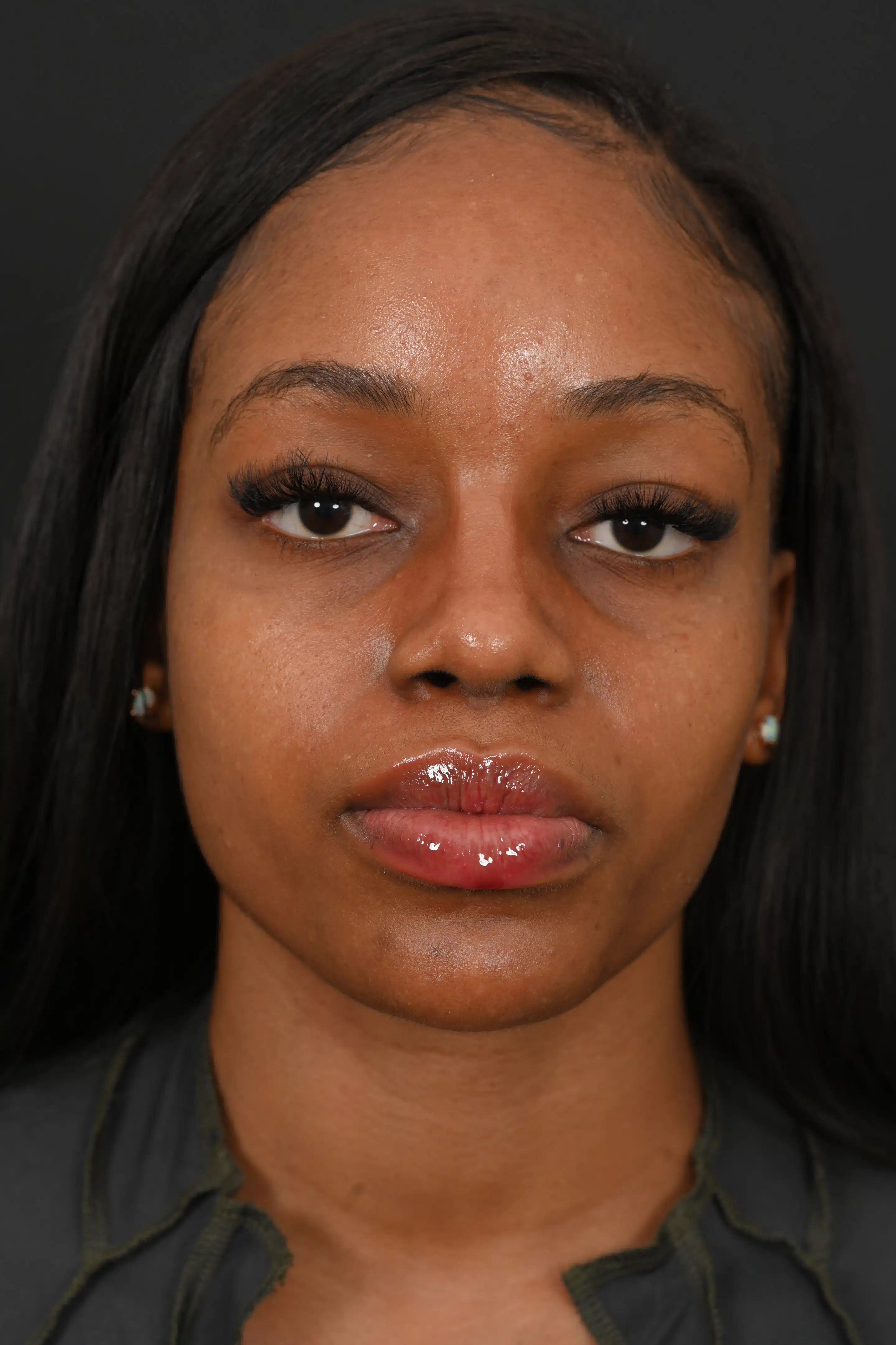 Notes from Dr. Siegel: This young female patient wanted an overall thinner nose, however she wanted to maintain her ethnic appearance. One of concerns was a low nasal bridge, which gave her a flat-nose appearance (when viewed from the front). She also wanted her tip to be refined, also in a natural way. I augmented the height of her bridge to give a thinner nasal appearance with cartilage. The tip was refined by both sculpting the tip and by narrowing the nostrils – also called alar base reduction.
