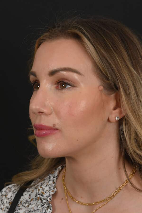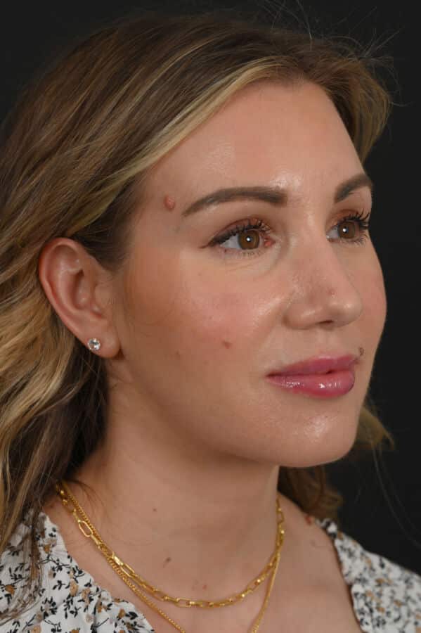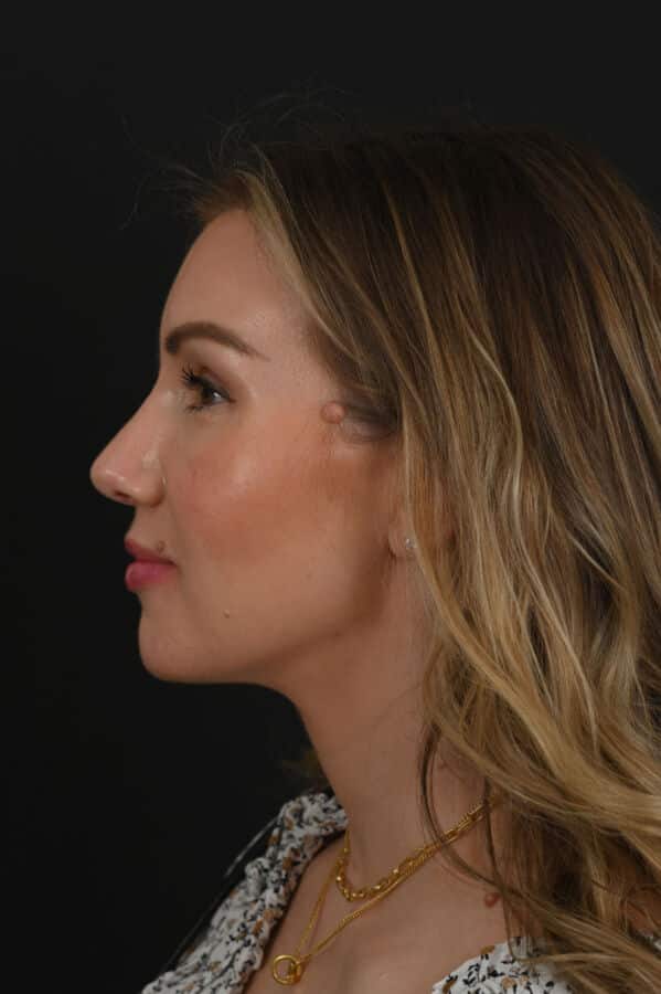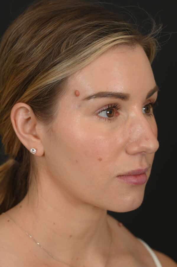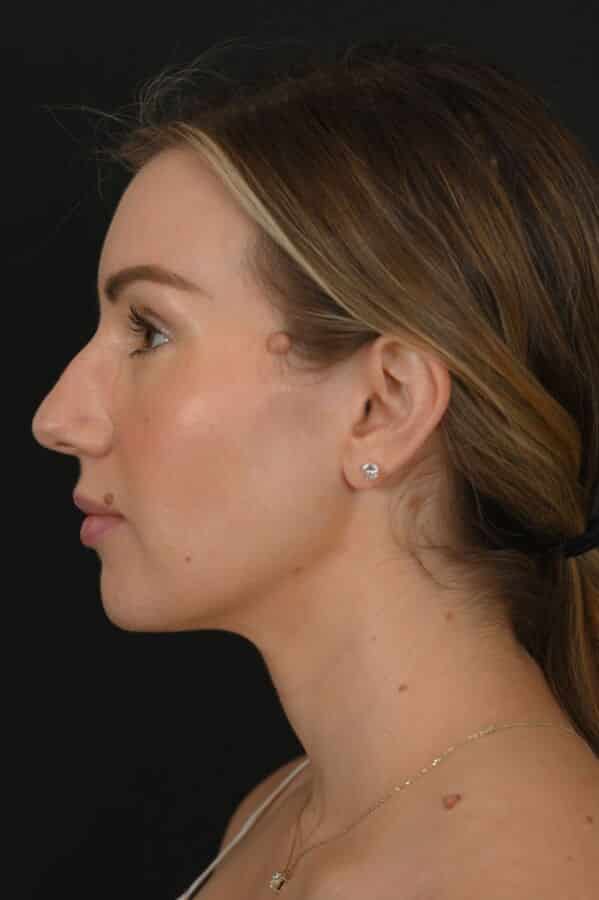 Notes from Dr. Siegel: The patient was bothered by a large dorsal hump and a bulbous tip. She wanted to improve on these features without changing the rotation of the tip. She wanted a straight bridge without curvature, as well as a better tip shape, both of which were achieved by her rhinoplasty.