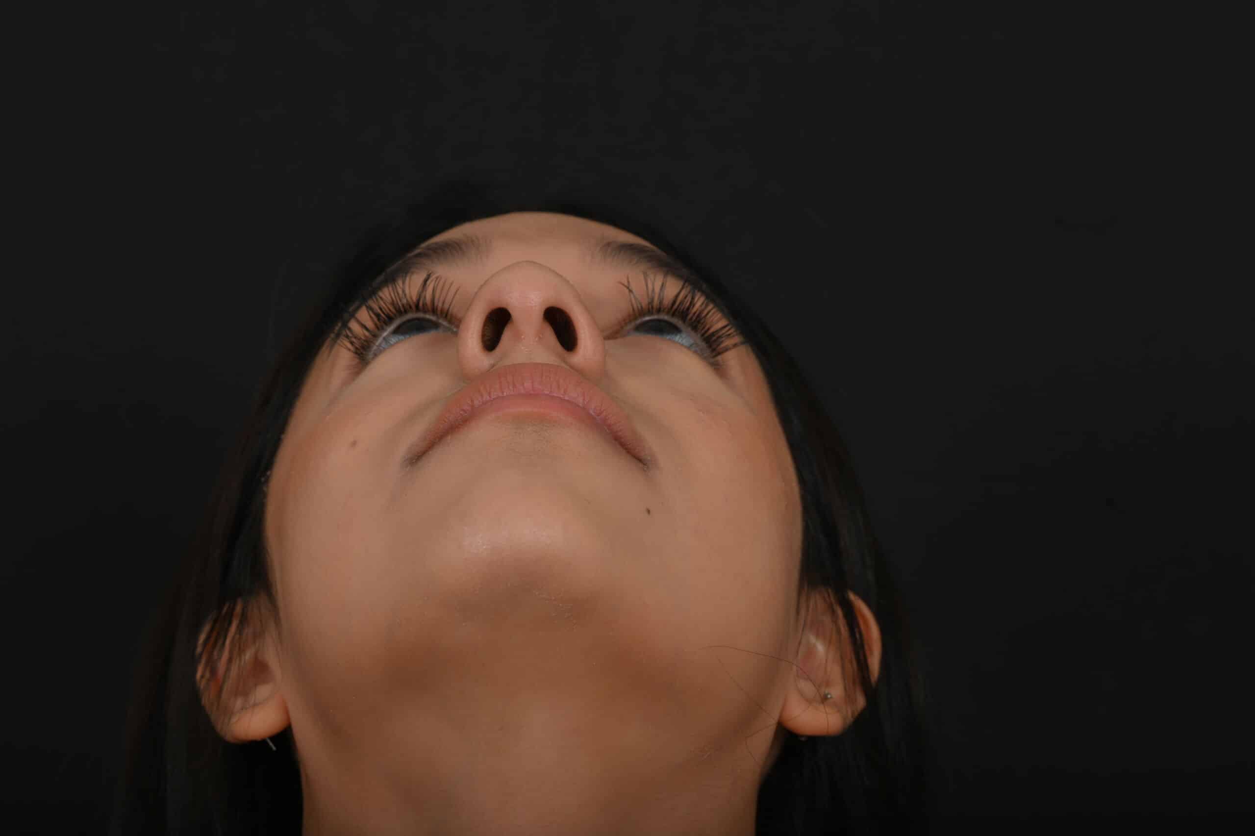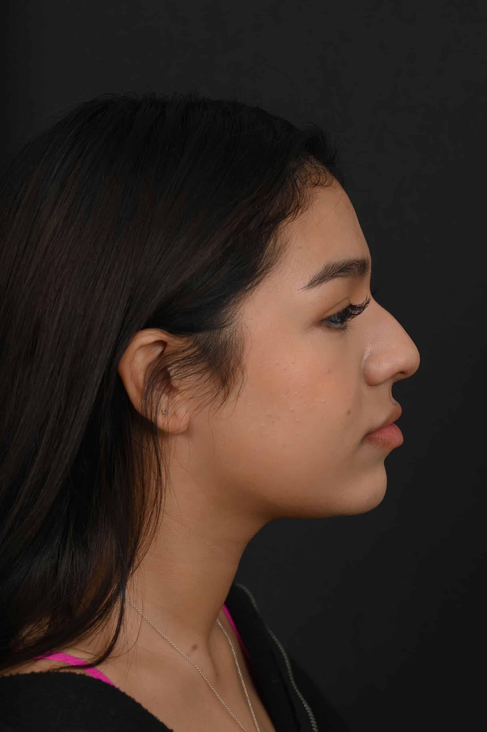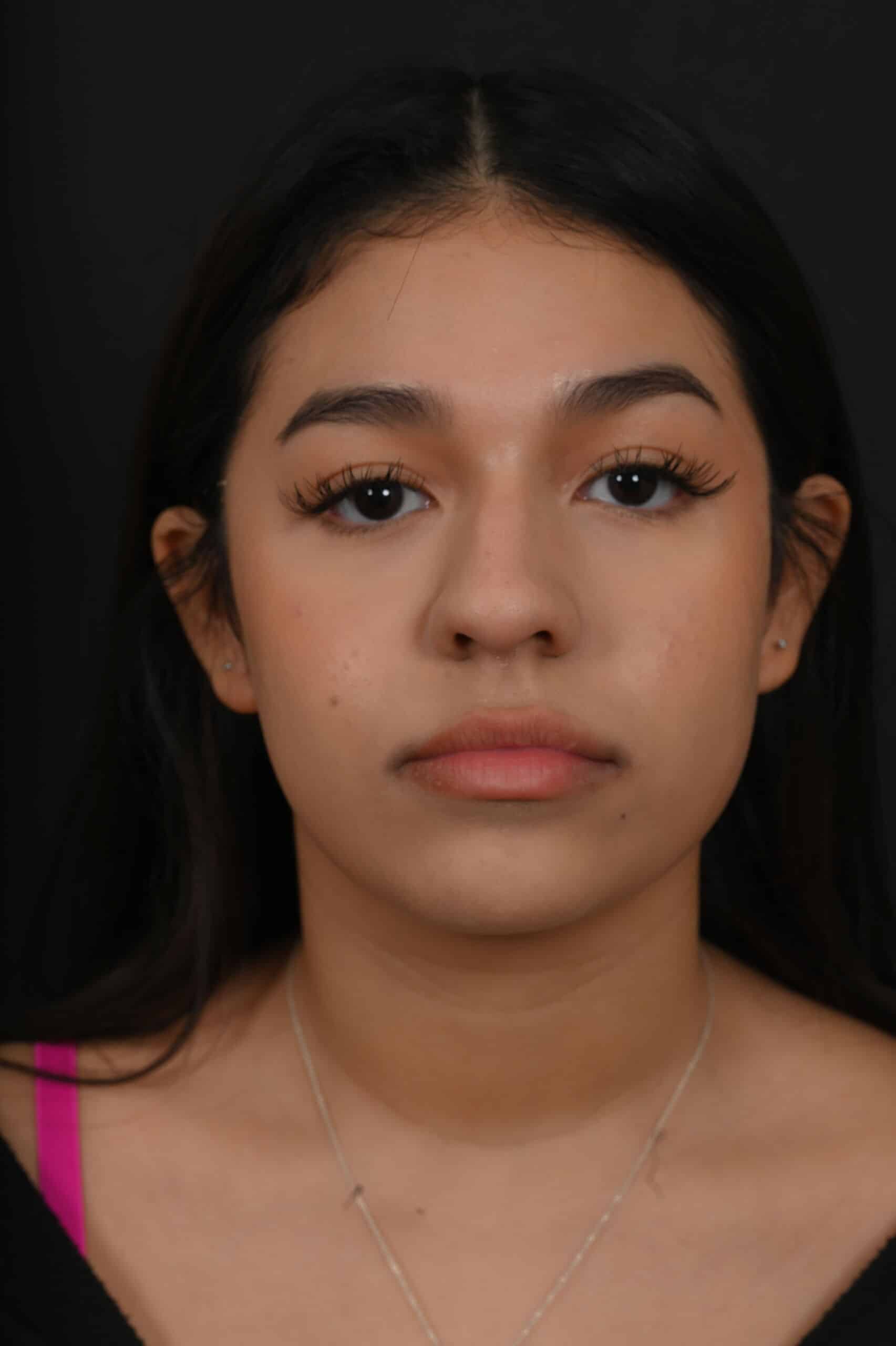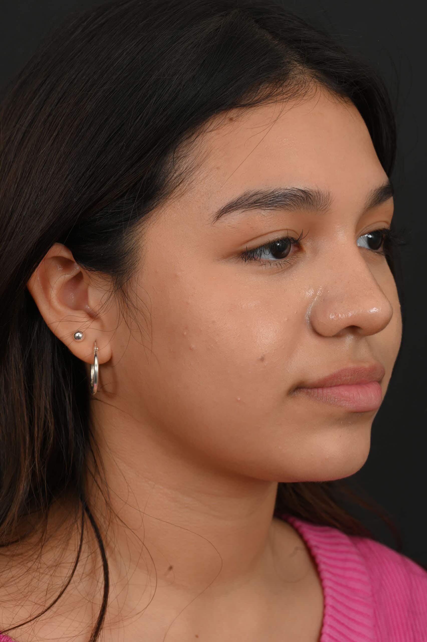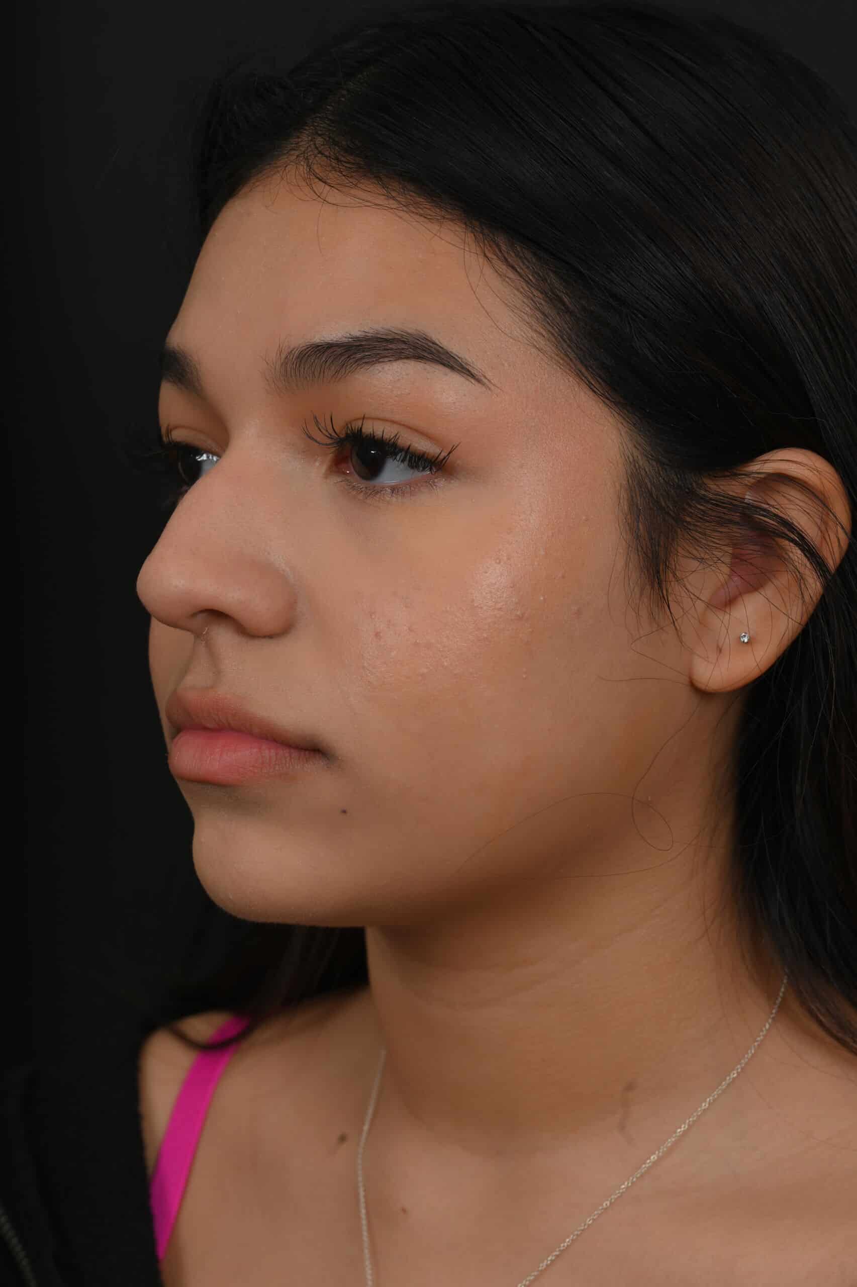 Notes from Dr. Siegel: Our Hispanic patient had thick skin, and was bothered by the lack of tip definition and a large dorsal hump, Her nose was also crooked. Her rhinoplasty straightened her nose and improved her breathing. The hump was removed and the tip was sculpted and refined.