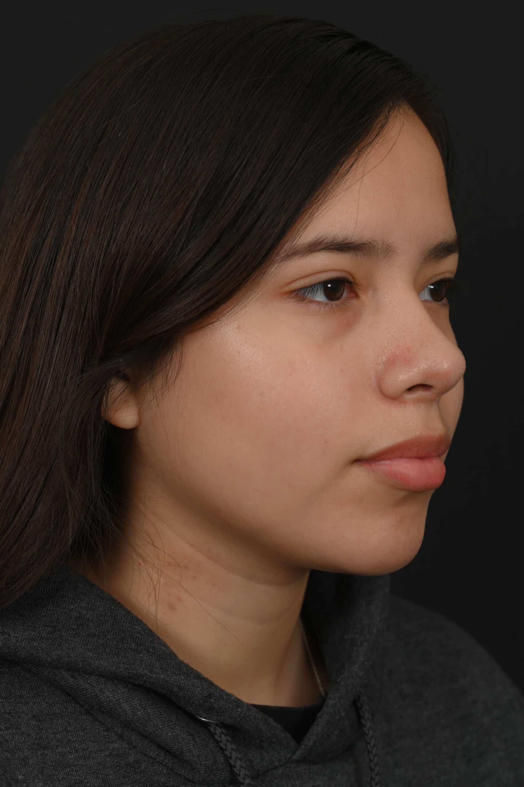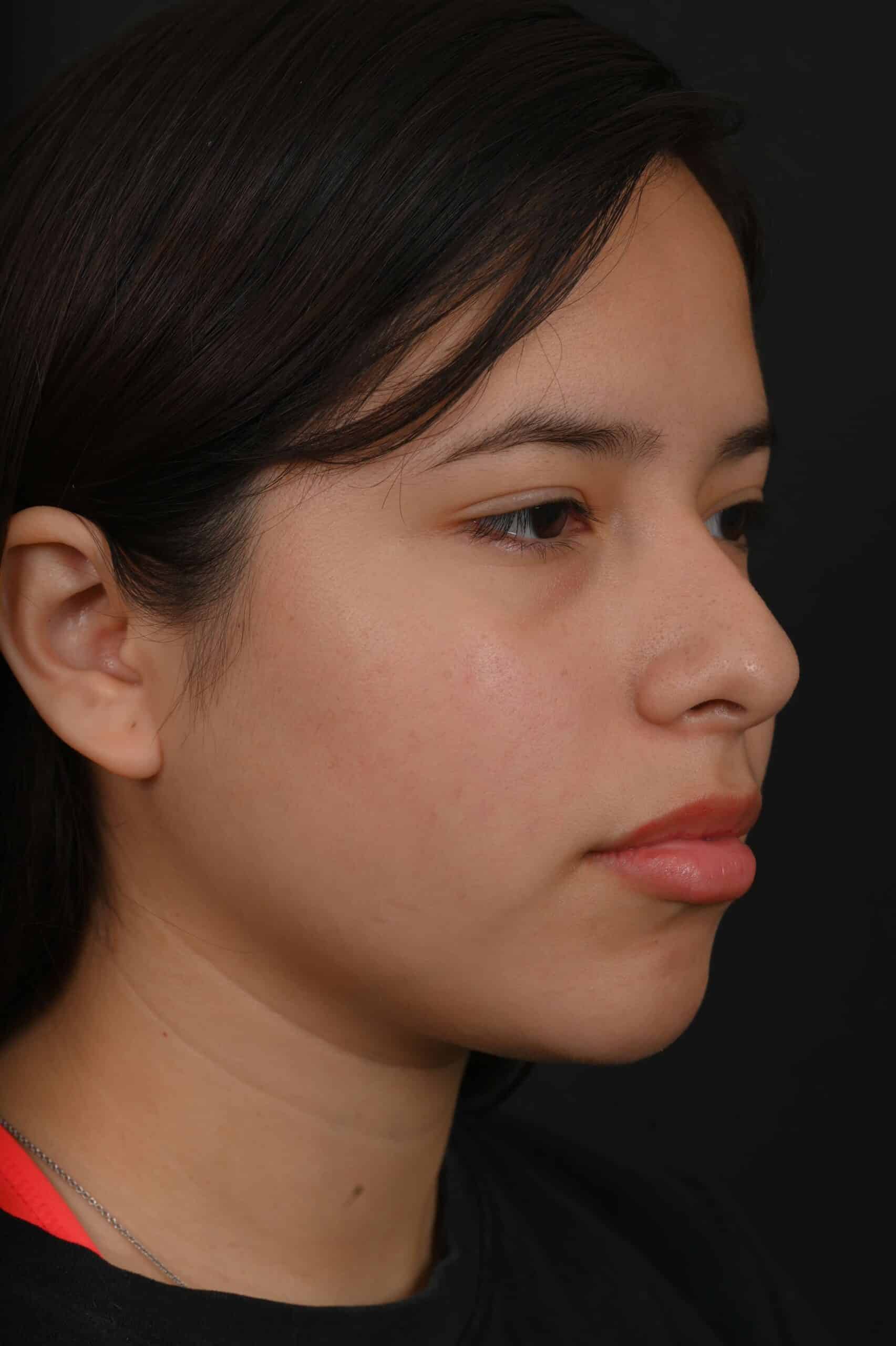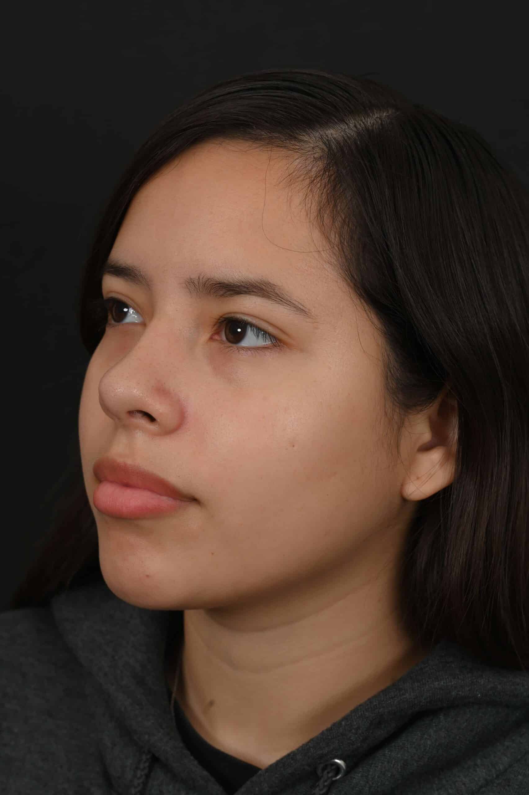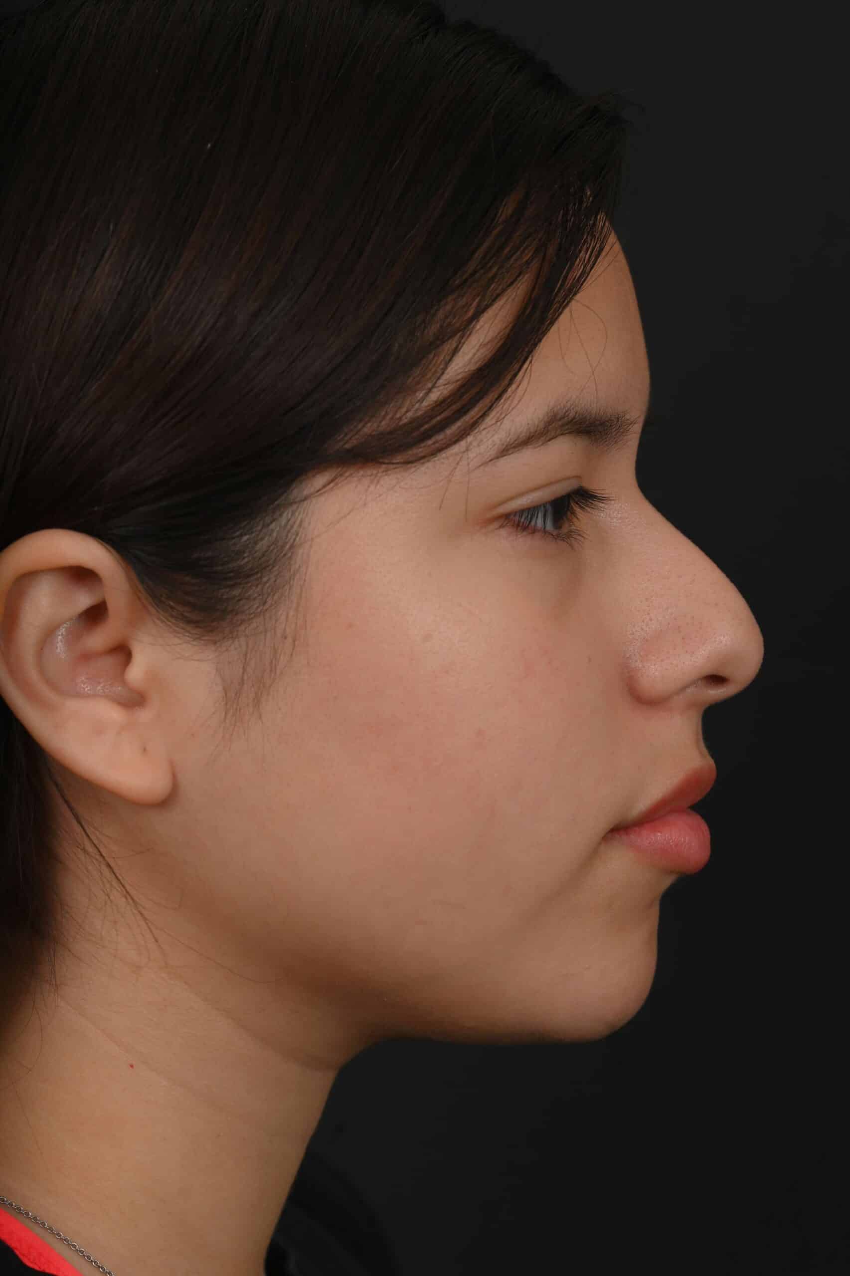 Notes from Dr. Siegel: This patient had a large dorsal hump, a bridge that was too thin, and a tip that was too broad, giving the appearance of disproportion. Her rhinoplasty eliminated the hump and created better harmony between the top and bottom of her nose. Her bridge was adjusted to be more proportioned and with a slimmer tip.