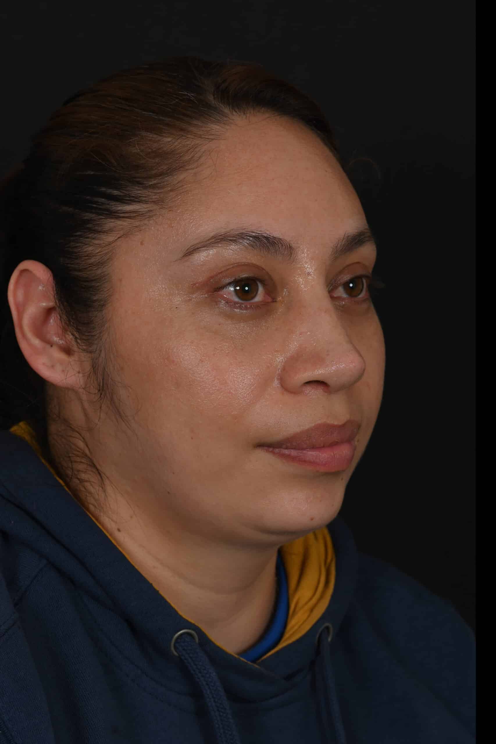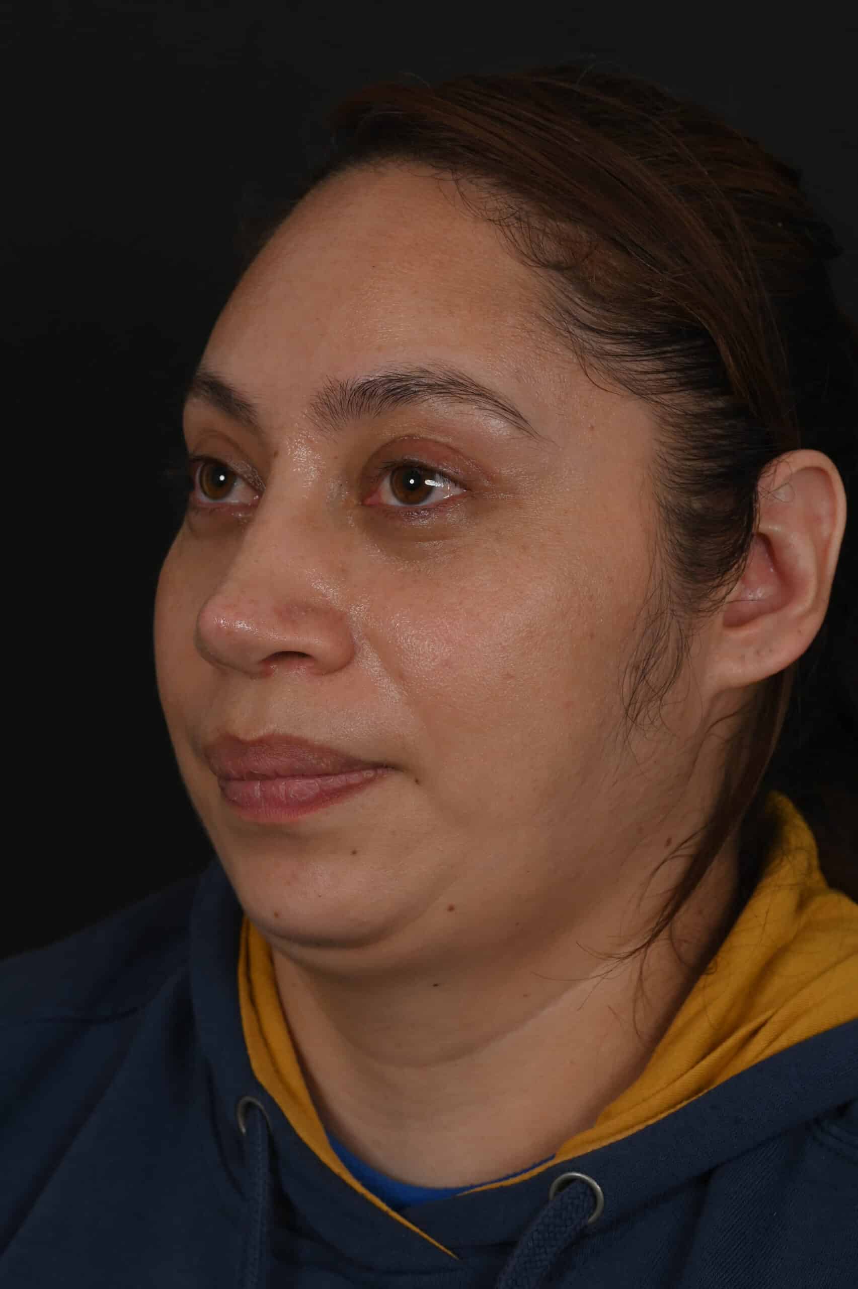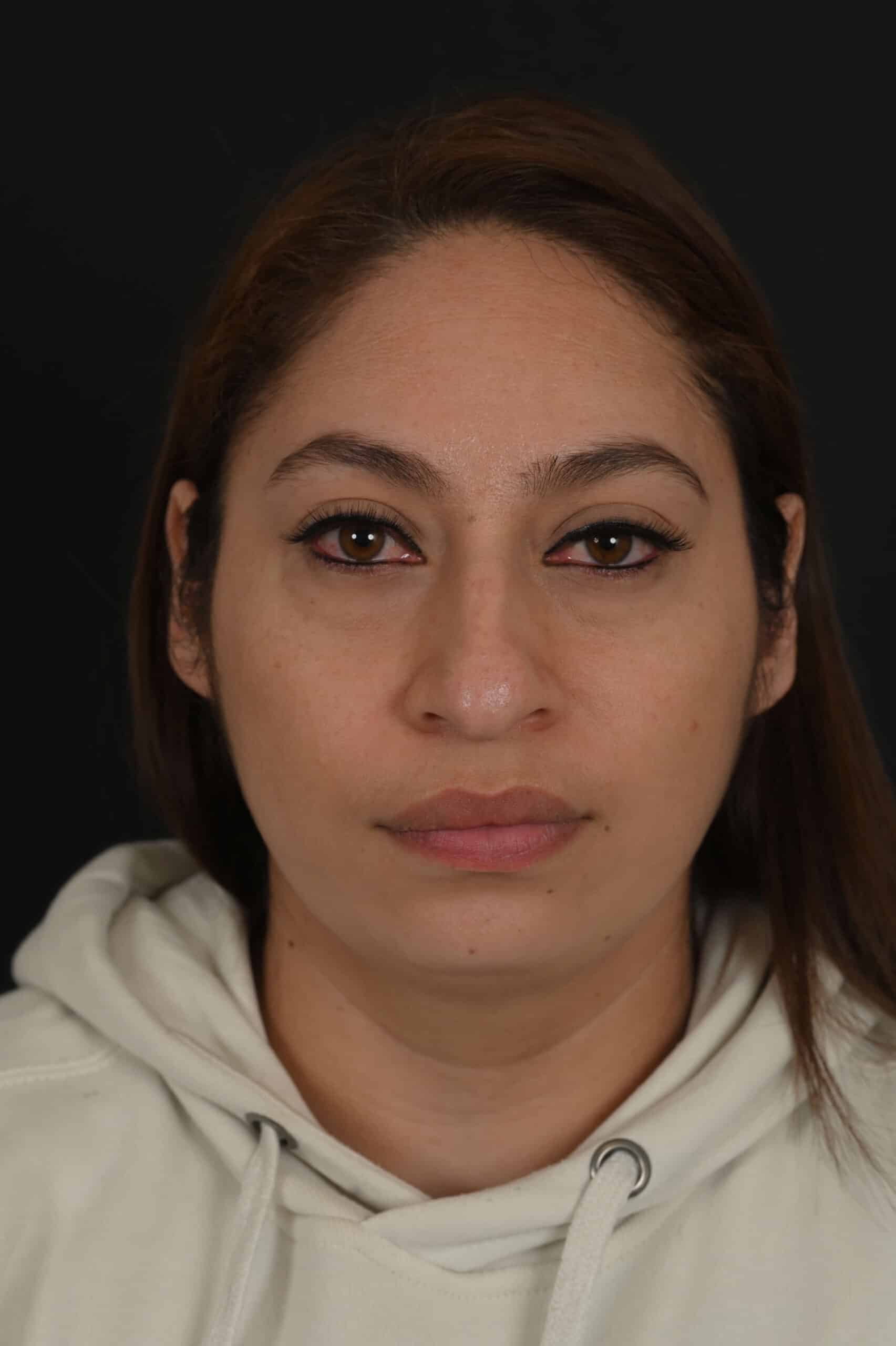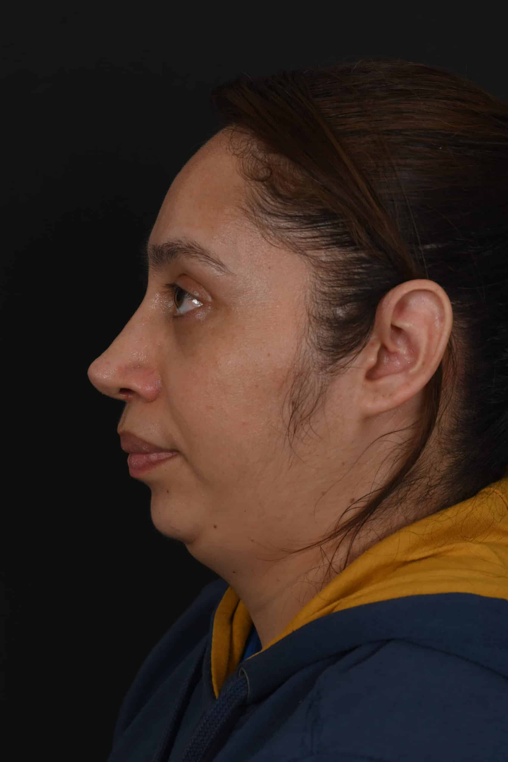 Notes from Dr. Siegel: An under-projected (short) nose with a large hump and very broad tip. Our patient wanted a more-Caucasian-looking nose. Her tip was given more projection definition. The hump was removed. She did not want a nostril reduction.