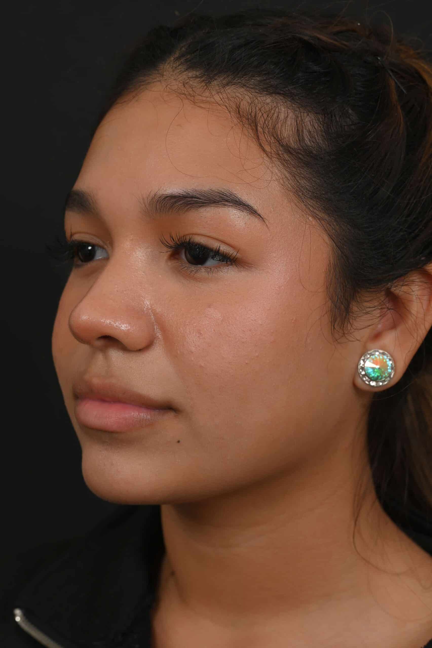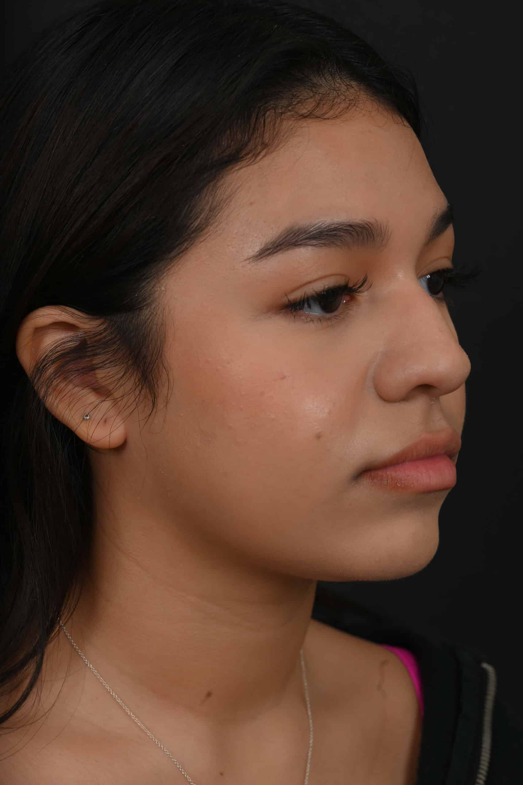 Notes from Dr. Siegel: Our patient’s concerns: a very crooked nose, large hump, and bulbous tip. She did not need any more tip rotation. The hump was removed, the nose straightened, and the tip narrowed to achieve a harmonious appearance. Tip elevation was maintained.