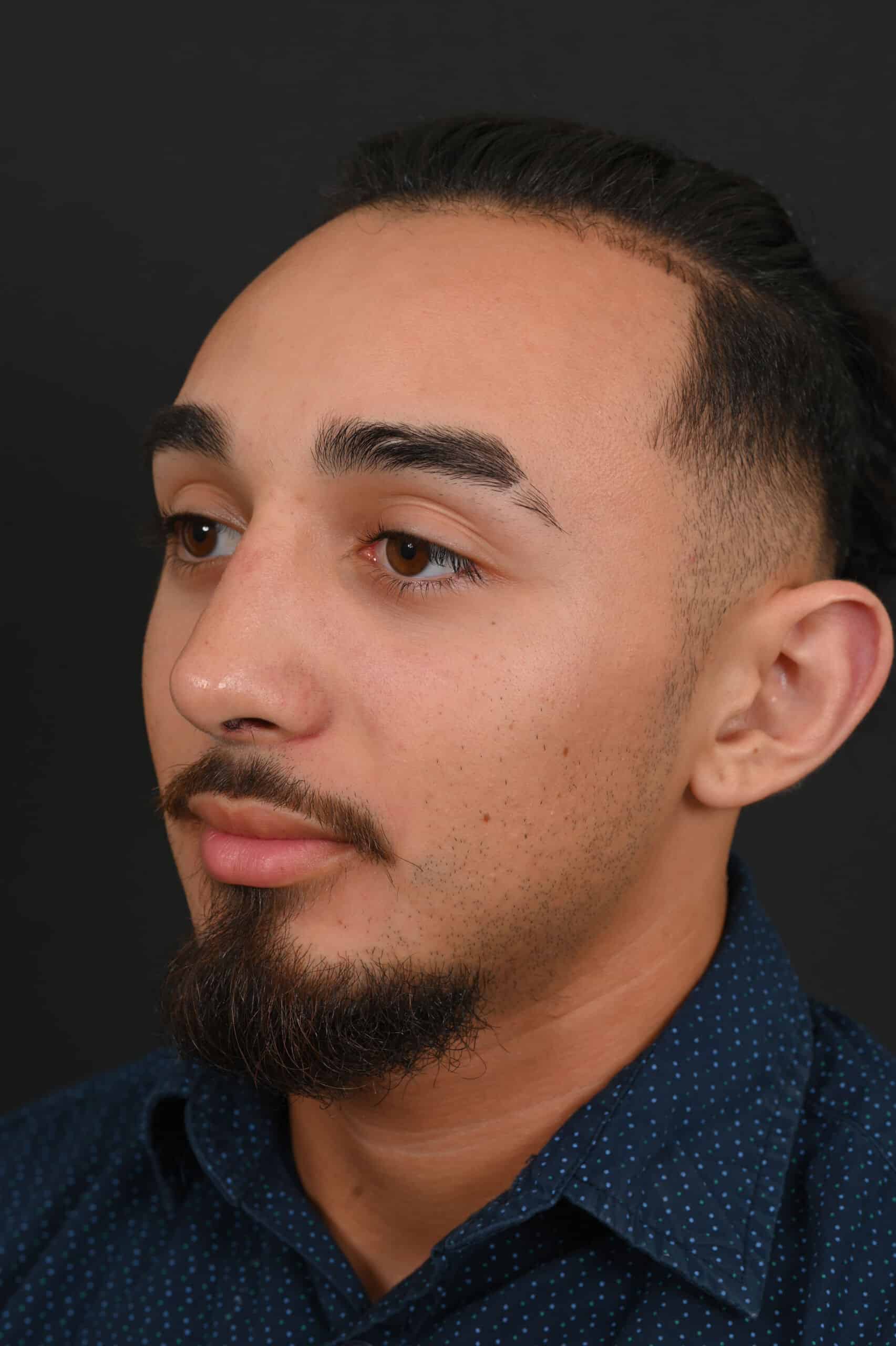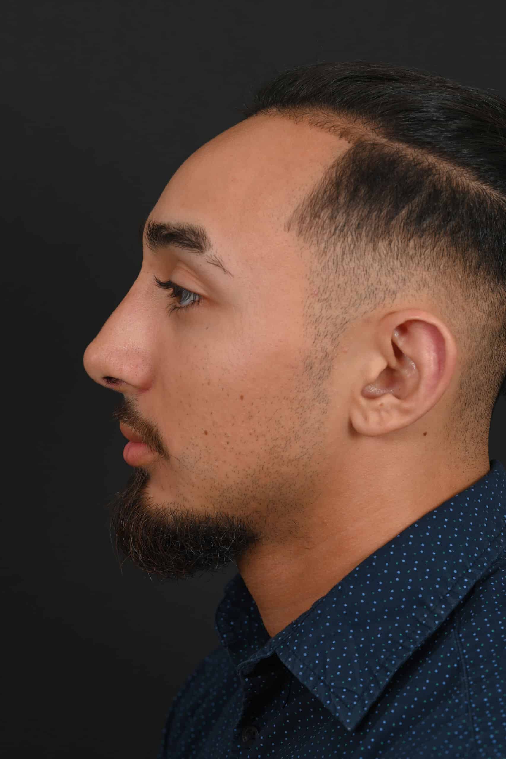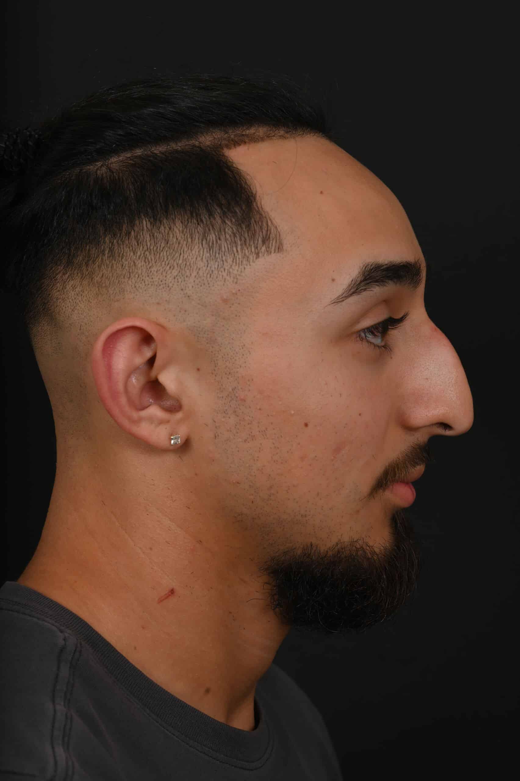 Notes from Dr. Siegel: The patient was bothered by a large dorsal hump and a droopy tip—his goal was to maintain a masculine appearance. The nose was slightly shortened, the hump removed and the tip slightly elevated.