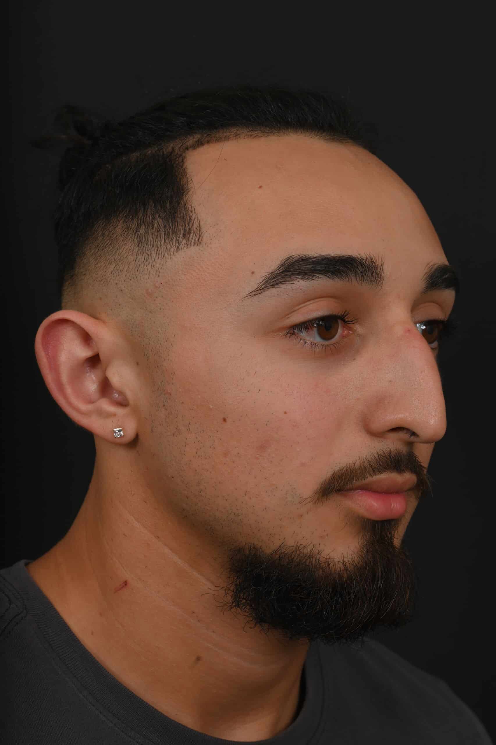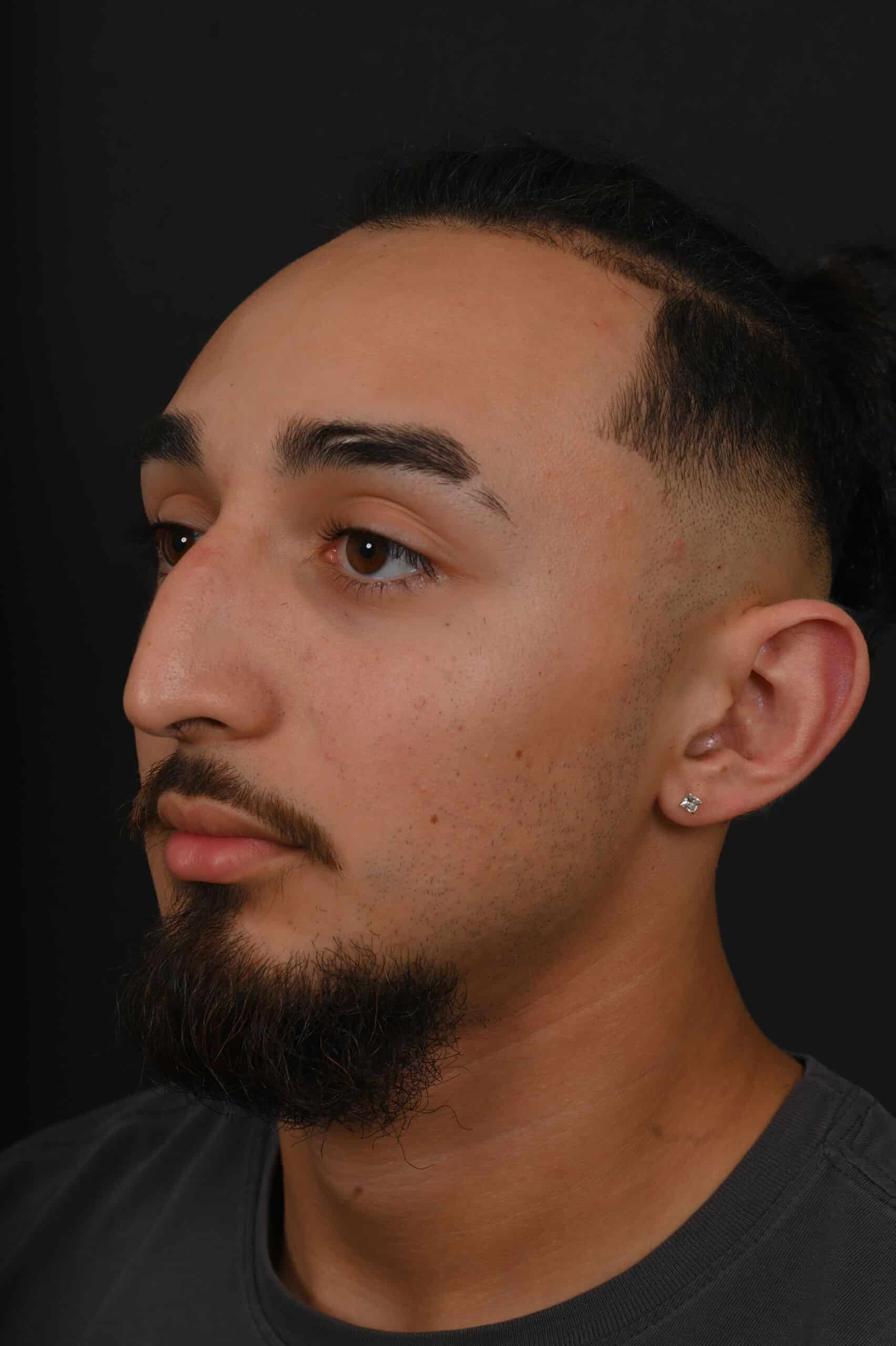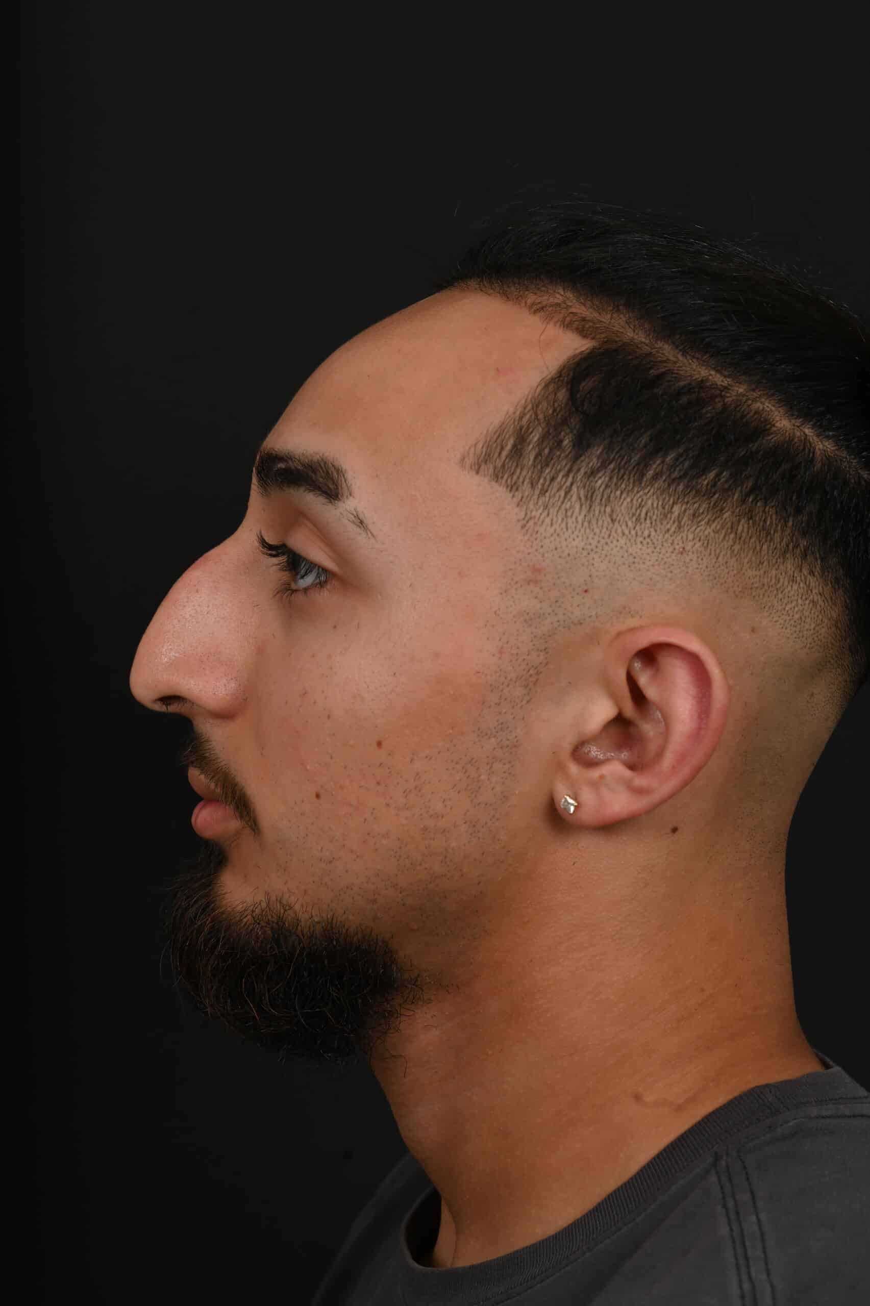 Notes from Dr. Siegel: The patient was bothered by a large dorsal hump and a droopy tip—his goal was to maintain a masculine appearance. The nose was slightly shortened, the hump removed and the tip slightly elevated.