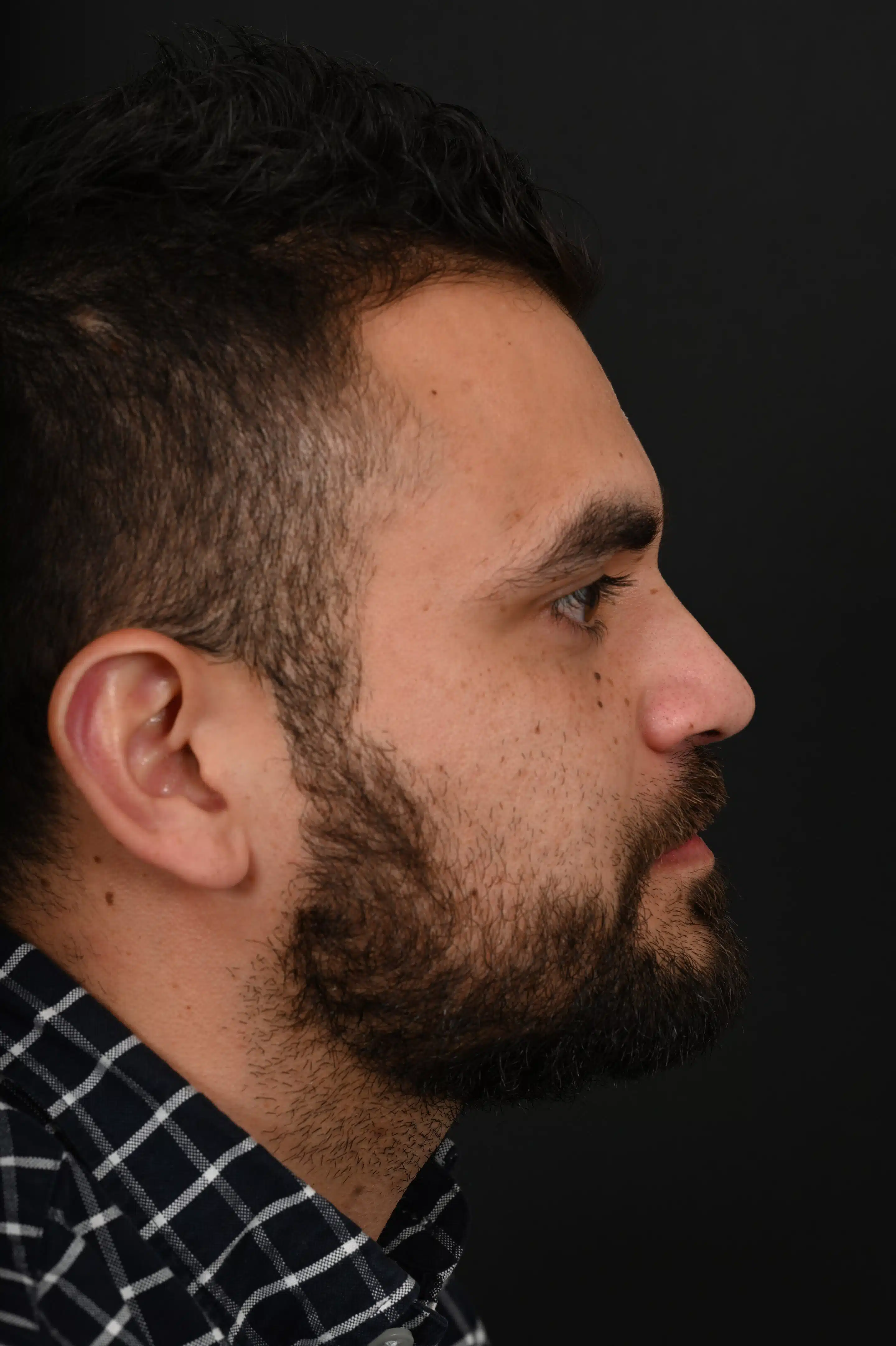 Notes from Dr. Siegel: The patient wanted a more harmonious nose and to remove the dorsal hump. Because the tip of his nose was too short, removing the dorsal hump would add to the projection of his nose and provide a straighter, more-assertive, masculine appearance.