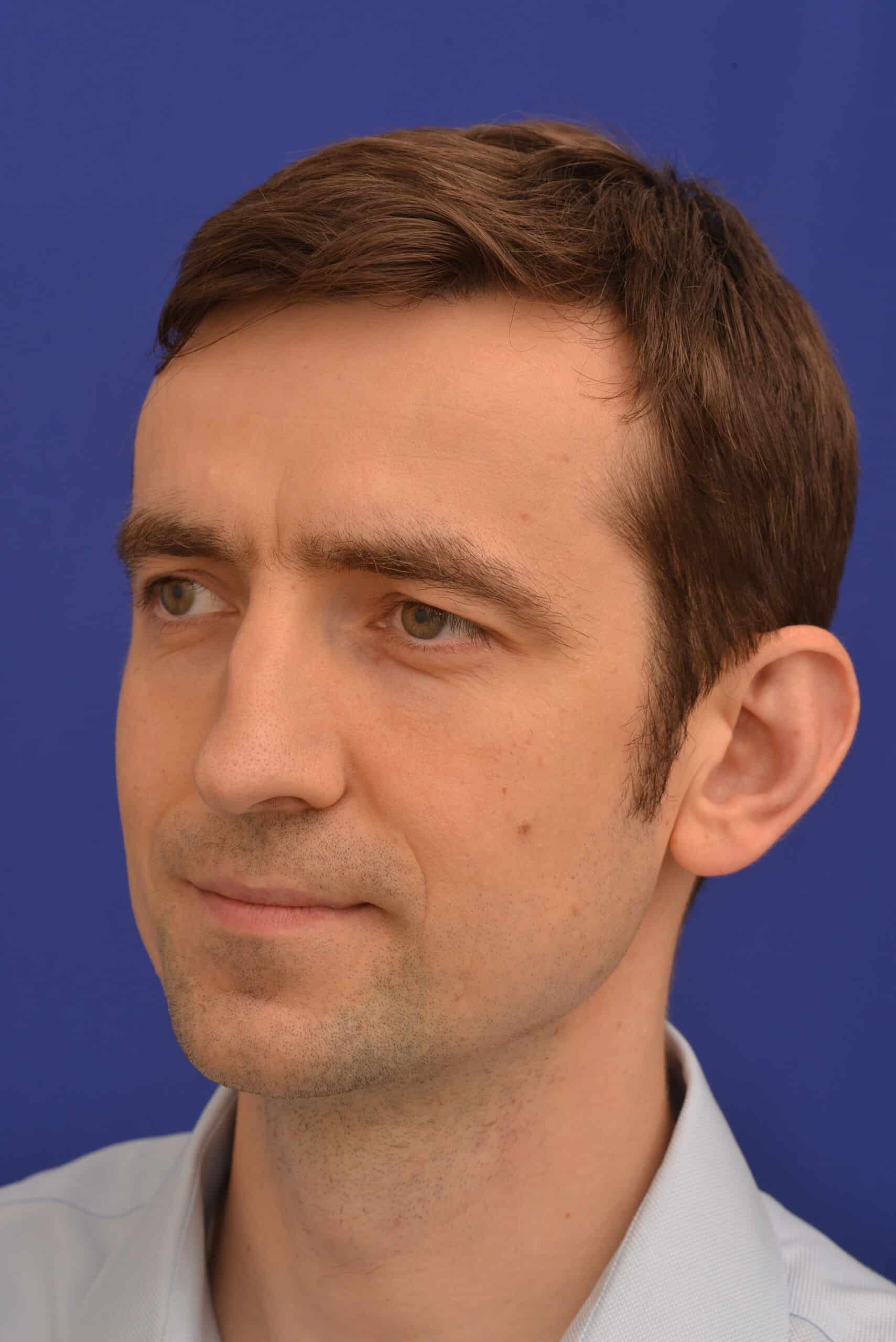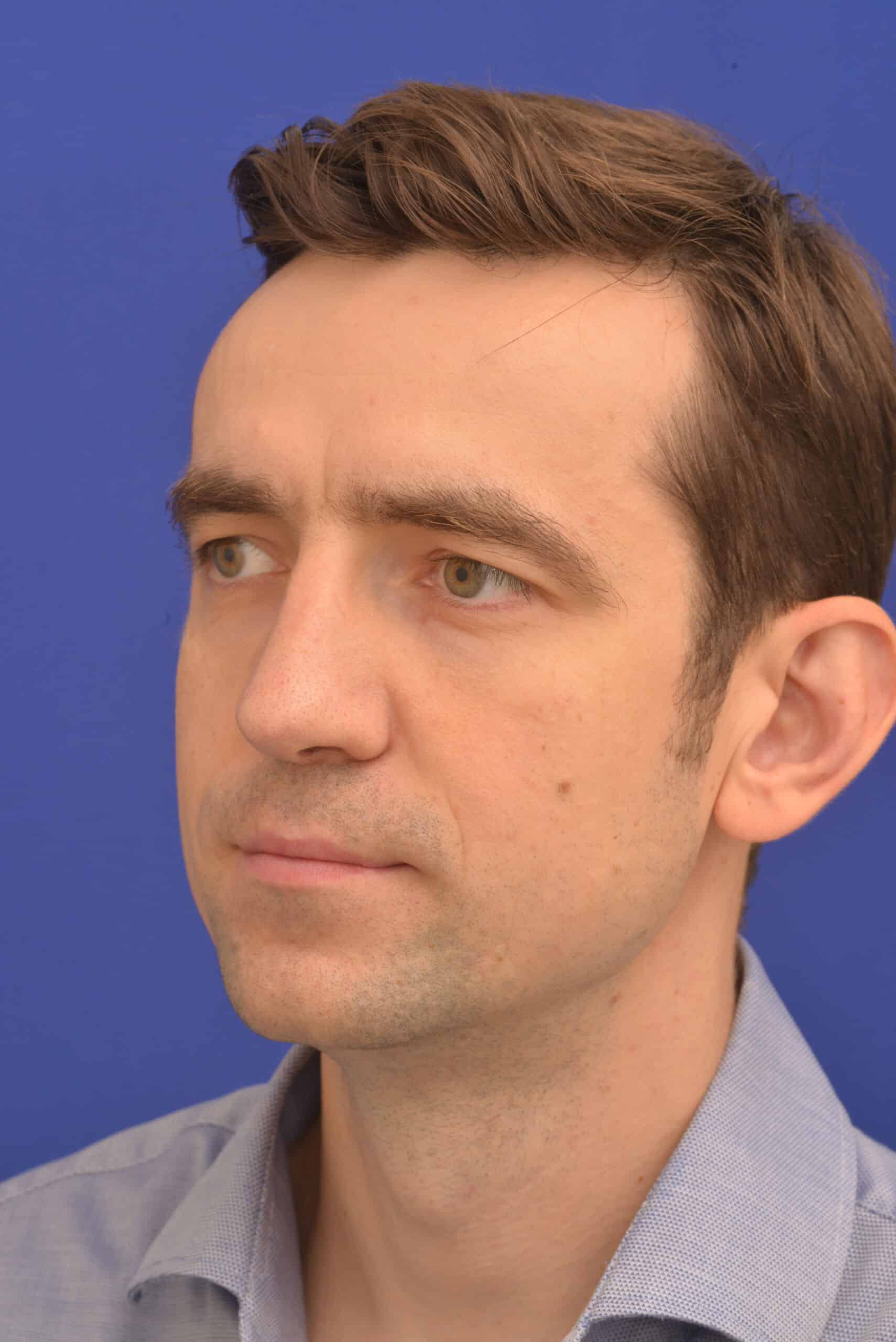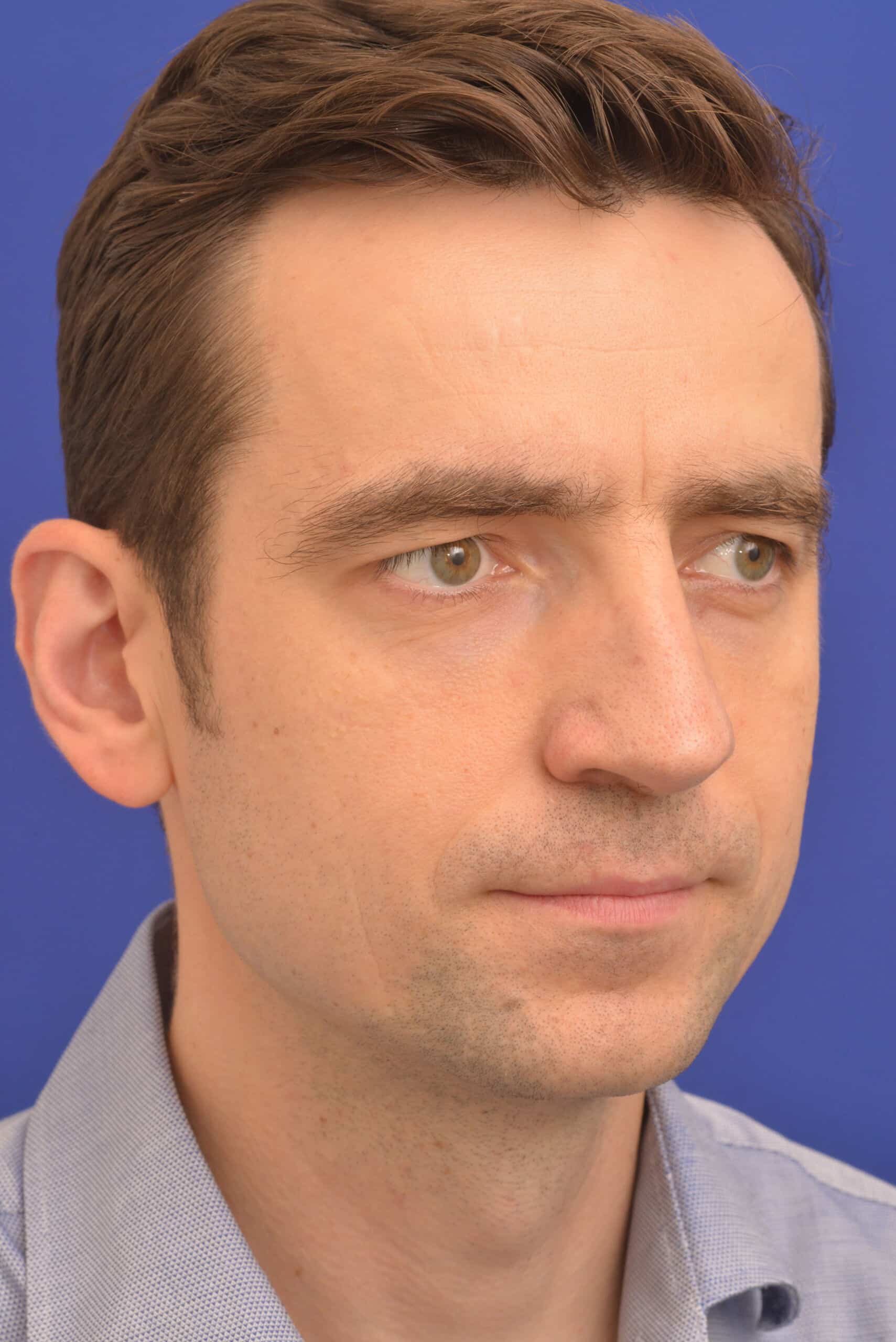 Notes from Dr. Siegel: Our patient was bothered by the appearance of a droopy nose and a small hump. Because he is 6 feet tall, he wanted to maintain a strong male nose proportionate to his stature. A rhinoplasty was performed to lift the tip of the nose conservatively, and to give him with a straight profile.