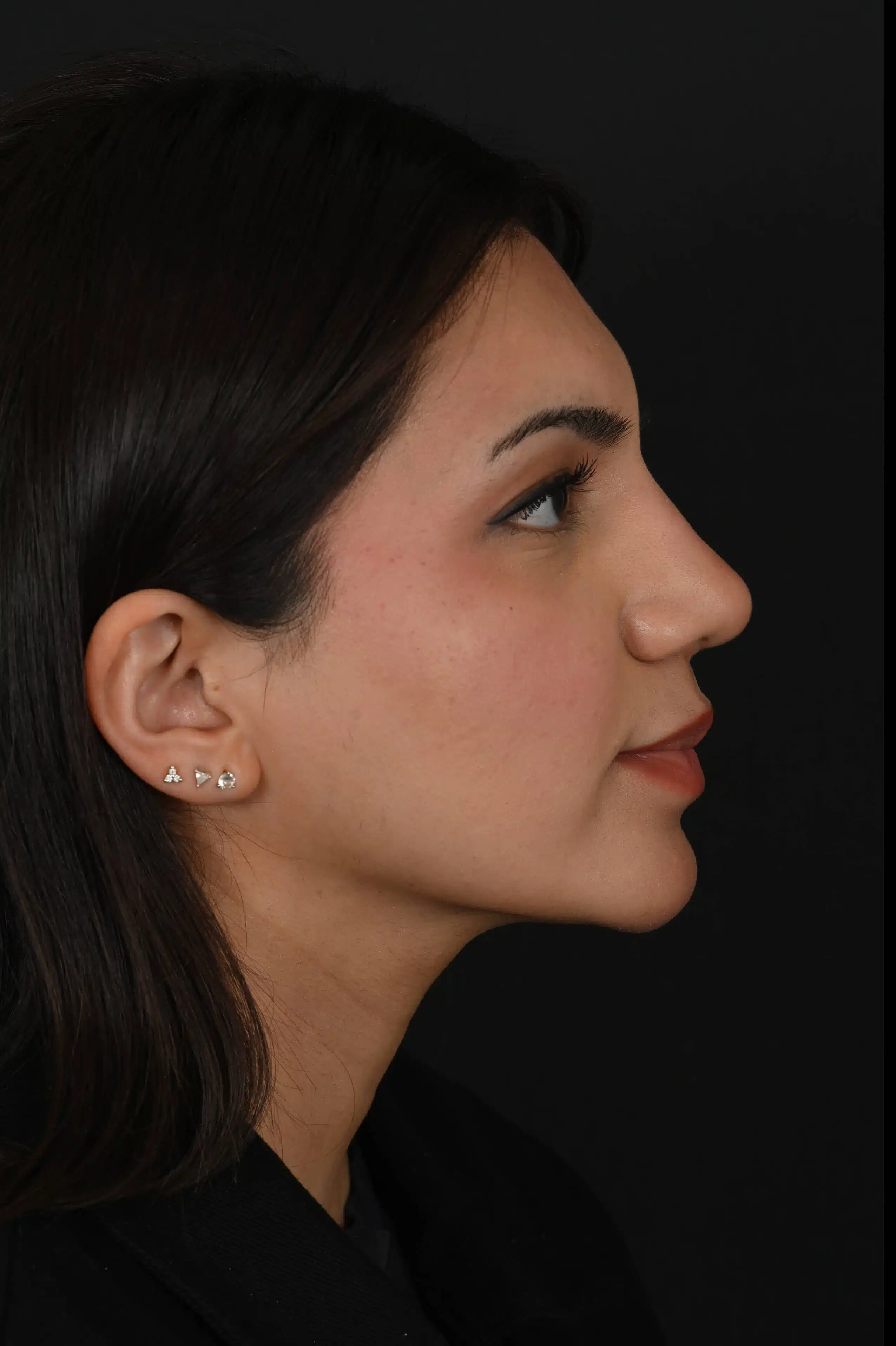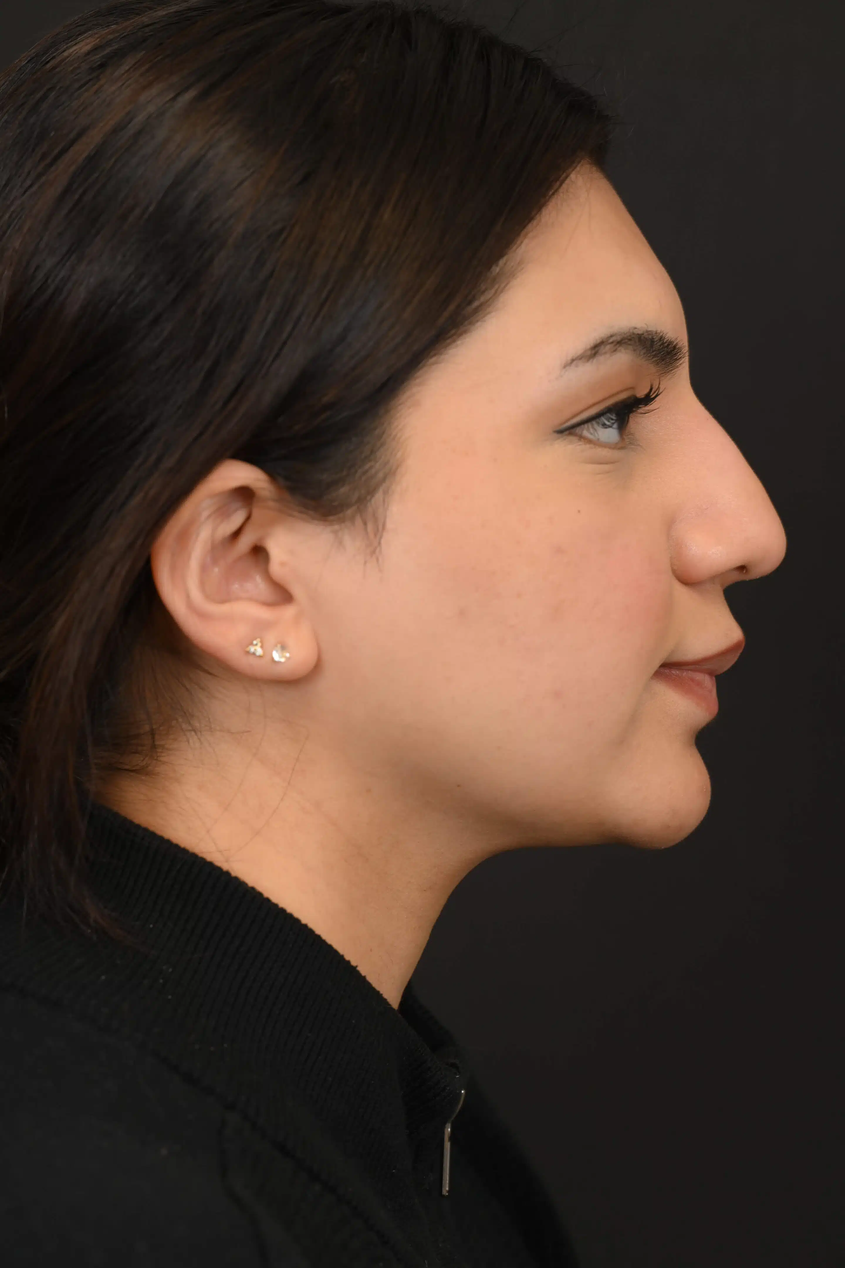 Notes from Dr. Siegel: Concerns: very wide nose from the front, very large dorsal hump, and a droopy tip. A natural curve was created for the bridge, the tip was lifted, and the overall width of the nose was narrowed.