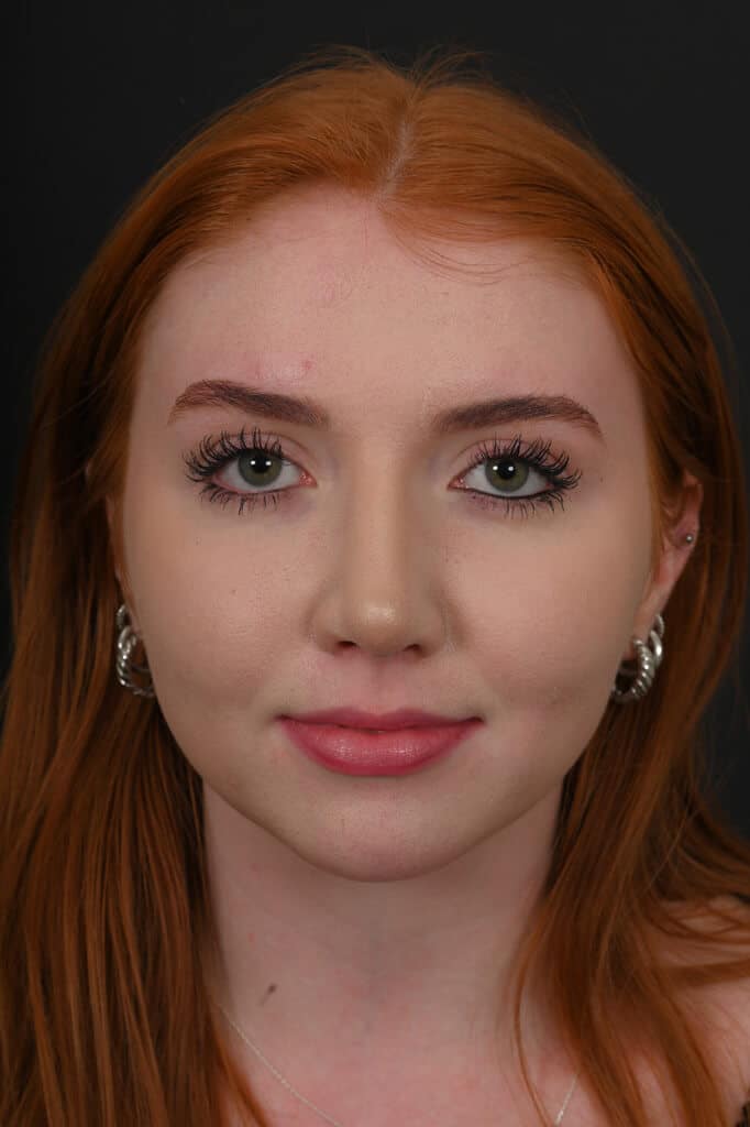 Notes from Dr. Siegel: Teen with a large hump, but proper tip elevation. It is important to maintain the same tip position to avoid an appearance that shows her nostrils from the front. Her rhinoplasty achieved a more appealing nose by creating a curve on the bridge and refining the tip shape, while maintaining the same tip position.