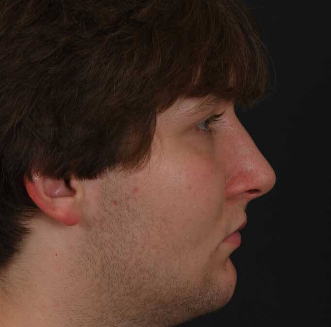 Notes from Dr. Siegel: Male teenage patient had a nose injury from playing sports. His nose was crooked, he had difficulty breathing, and he developed a hump after the injury. His goal was to straighten his nose and improve his breathing. Cosmetically he wanted to get as possible as his nose appearance before the injury- a straight profile and a strong masculine appearance. An ultrasonic rhinoplasty technique achieved these goals without breaking the bones, and with a quick recovery allowing him to start college only a few months after surgery.