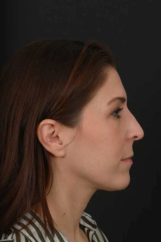 Notes from Dr. Siegel: Female patient was bothered by a droopy nose. She wanted a rhinoplasty to maintain her features, but wanted her nose to appear softer and more feminine. An ultrasonic rhinoplasty was used to sculpt the bridge by changing the hump into a soft curvature. The tip was slightly lifted and refined, and the nostrils were lowered for a softer appearance.