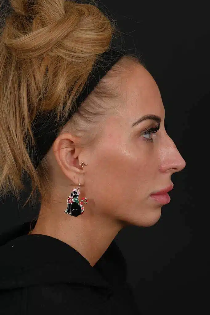 Notes from Dr. Siegel: The patient was bothered by the hump and slightly crooked appearance of her nose from the front. She liked the rest of her nose and did not want to alter its other features. The nose was straightened, the hump was reduced, and a slight curve was developed.